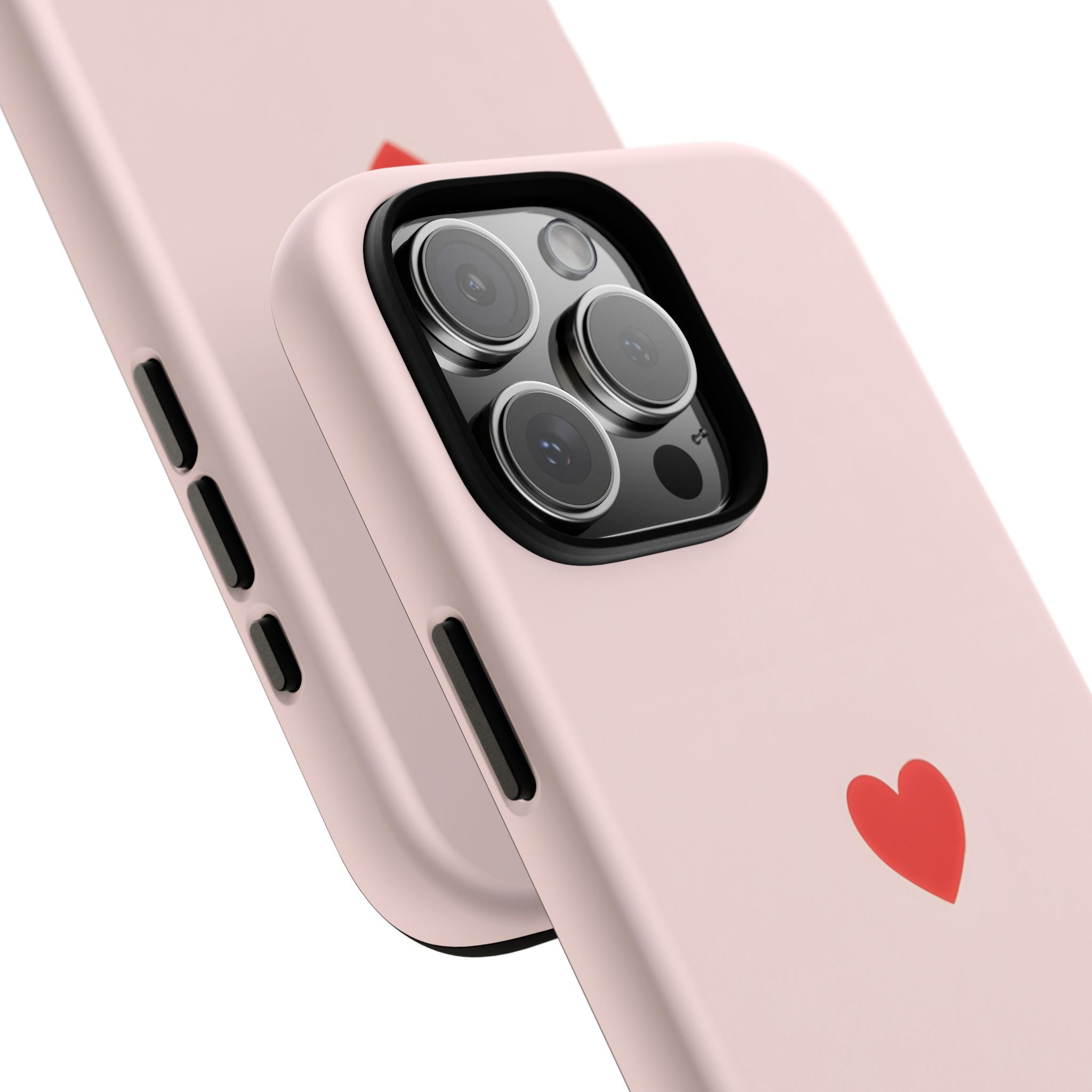Diese iPhone Hülle in hellem Rosa setzt mit einem zentral platzierten roten Herz ein bewusst minimalistisches Designstatement. Viel Weißraum, klare Formen und ein einzelnes Symbol sorgen für eine ruhige, moderne Optik, die sich dezent in den Alltag einfügt. Das Herzmotiv wirkt ikonisch und zurückhaltend zugleich und macht die Hülle zu einem zeitlosen Accessoire für alle, die klare Gestaltung und reduzierte Designs schätzen, ohne verspielte Elemente oder saisonale Anlässe.