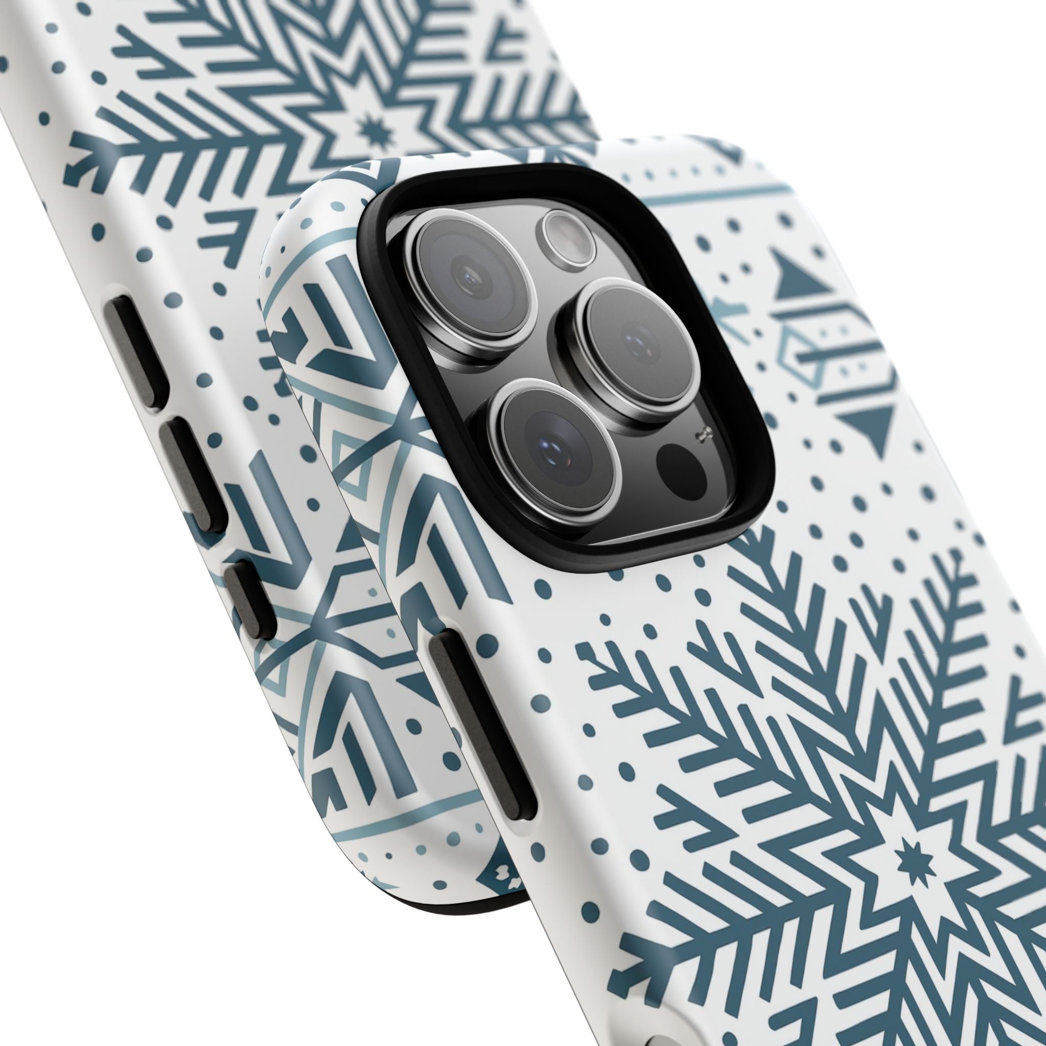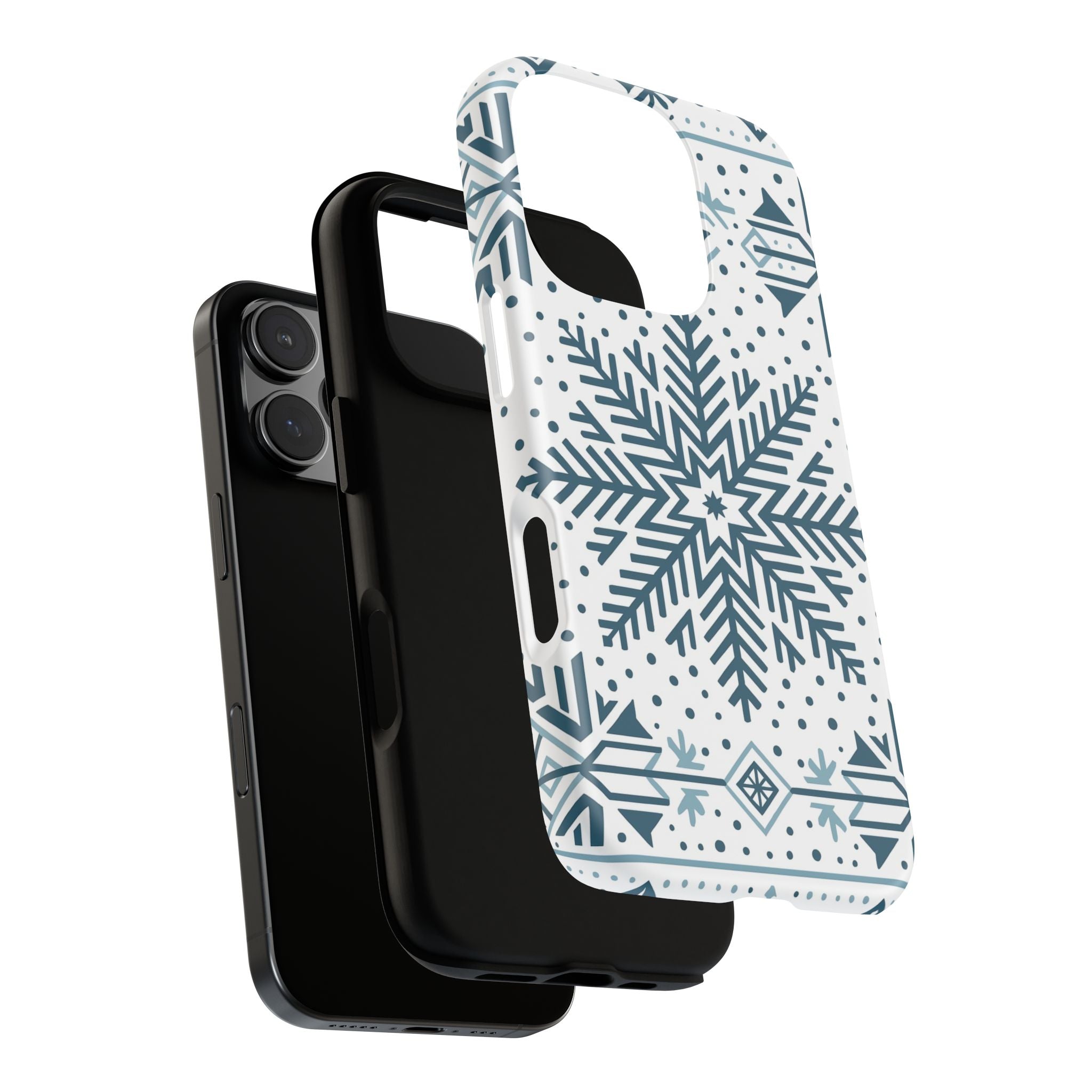 Diese hochwertige Handyhülle zeigt ein stilvolles Schneeflocken-Design in geometrischem Muster – perfekt für alle, die den Zauber des Winters lieben.