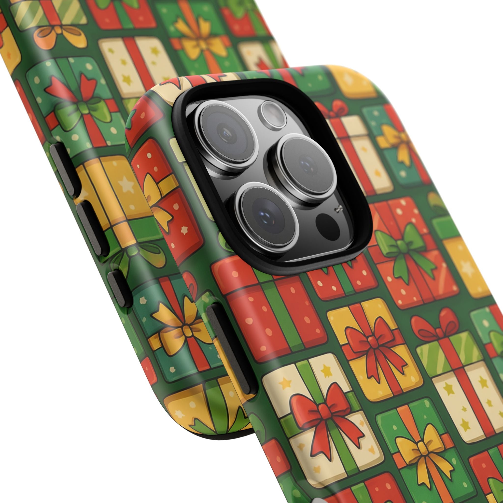 Diese festliche iPhone-Hülle bringt pure Weihnachtsfreude auf dein Smartphone. Ein Meer aus liebevoll verpackten Geschenken in warmen Rot-, Grün- und Goldtönen sorgt für sofortige Feiertagsstimmung. Das Design vereint festliche Farben mit verspielter Eleganz – perfekt, um die schönste Zeit des Jahres zu feiern. Ideal als Geschenk für: Weihnachtsfans, Deko-Liebhaber, Freunde von festlichen Designs.